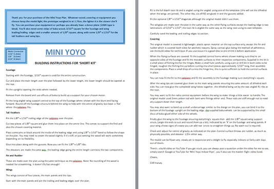 Mini Yoyo High-Wing Radio Control Slow Flyer Build PLANS